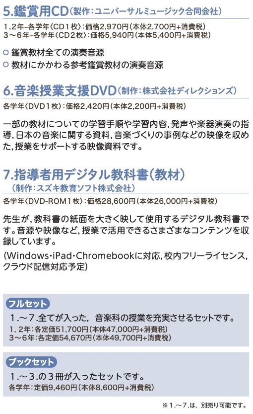 ⑤音楽授業支援DVD ⑥指導用CD ⑦鑑賞用CD