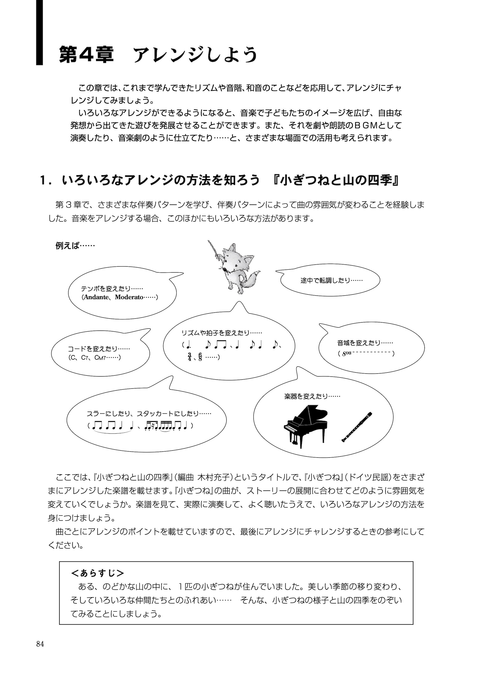○最終章のアレンジを学ぶ第4章では、第3章までに学んだ基礎を応用し、授業で活用するシーンを想定しながらアレンジしていく方法を示している。