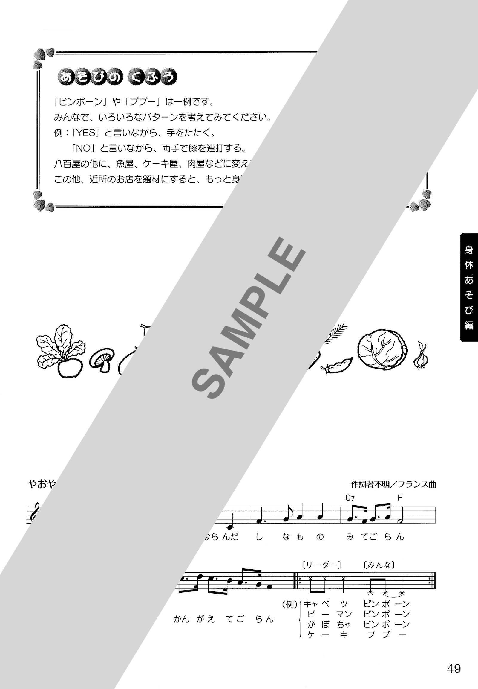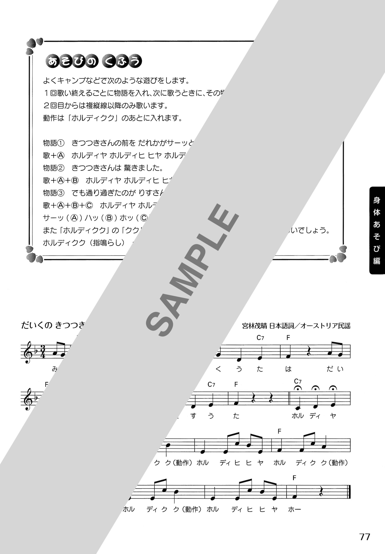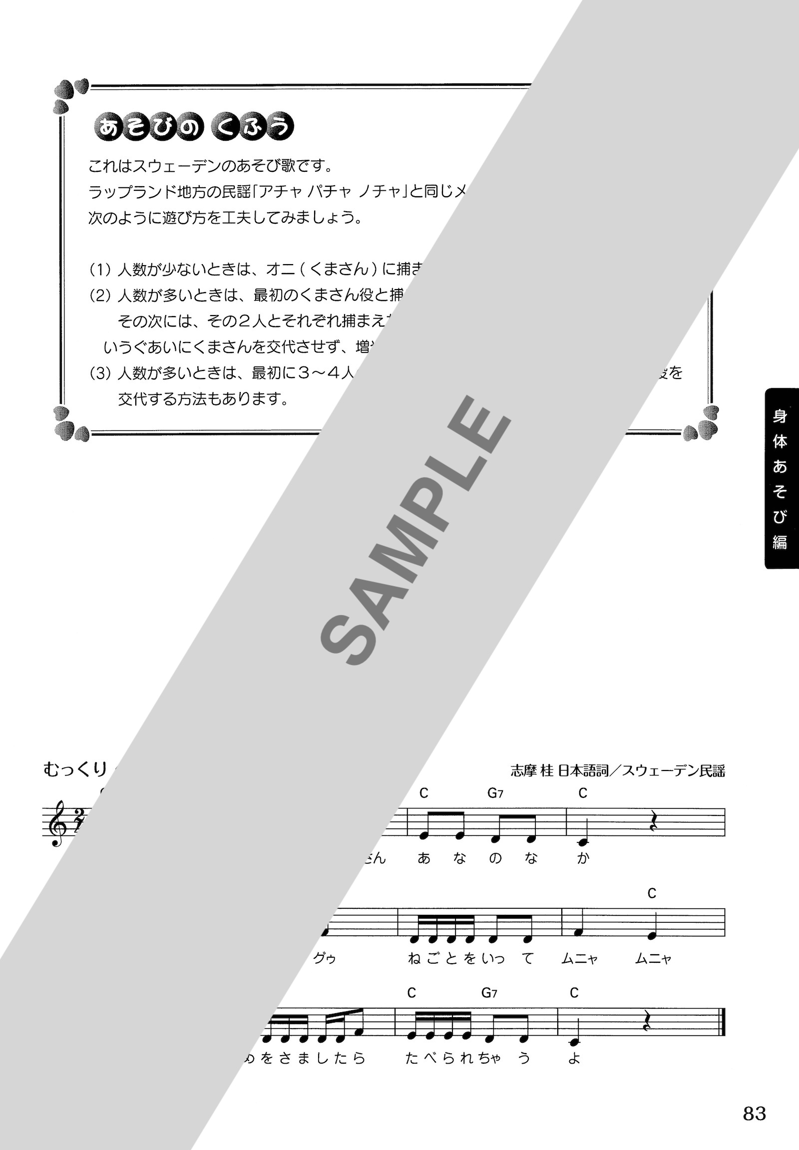 ○各曲に子どもたちの個性を引き出すアドバイス〈あそびのくふう〉を掲載している。