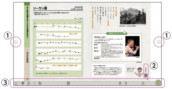 紙面上にあるアイコンをクリックすると、音源や動画などのデジタルコンテンツが起動します。