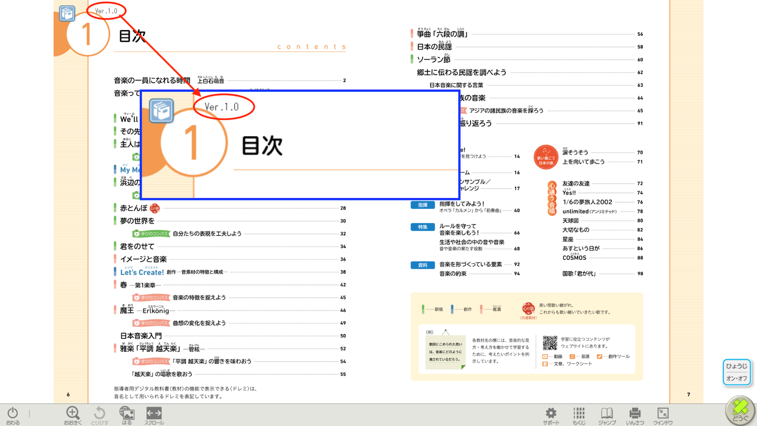 ※「もくじ」画面左上や、教材管理画面に、現在お使いのバージョンが記されておりますので、ご確認ください。