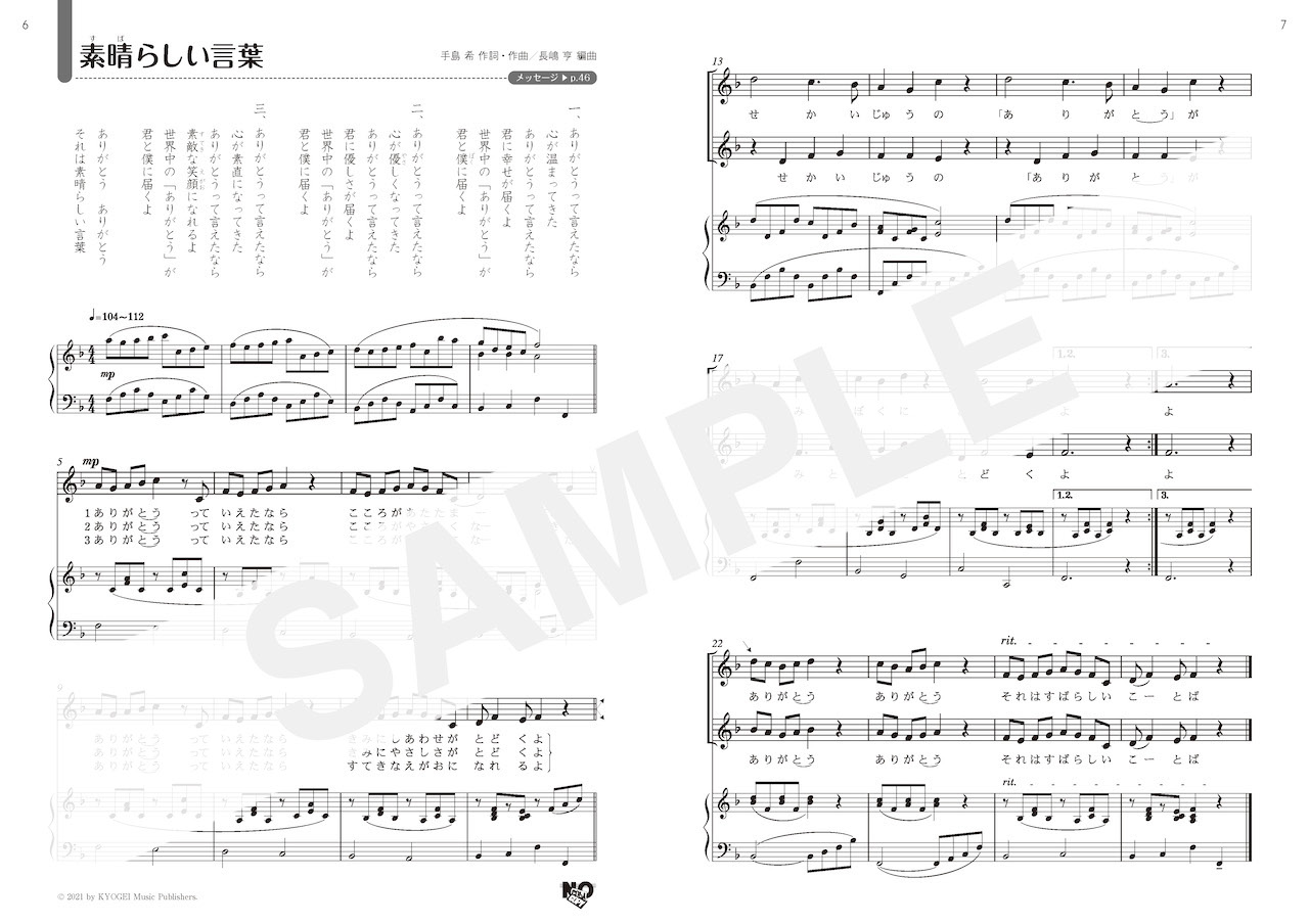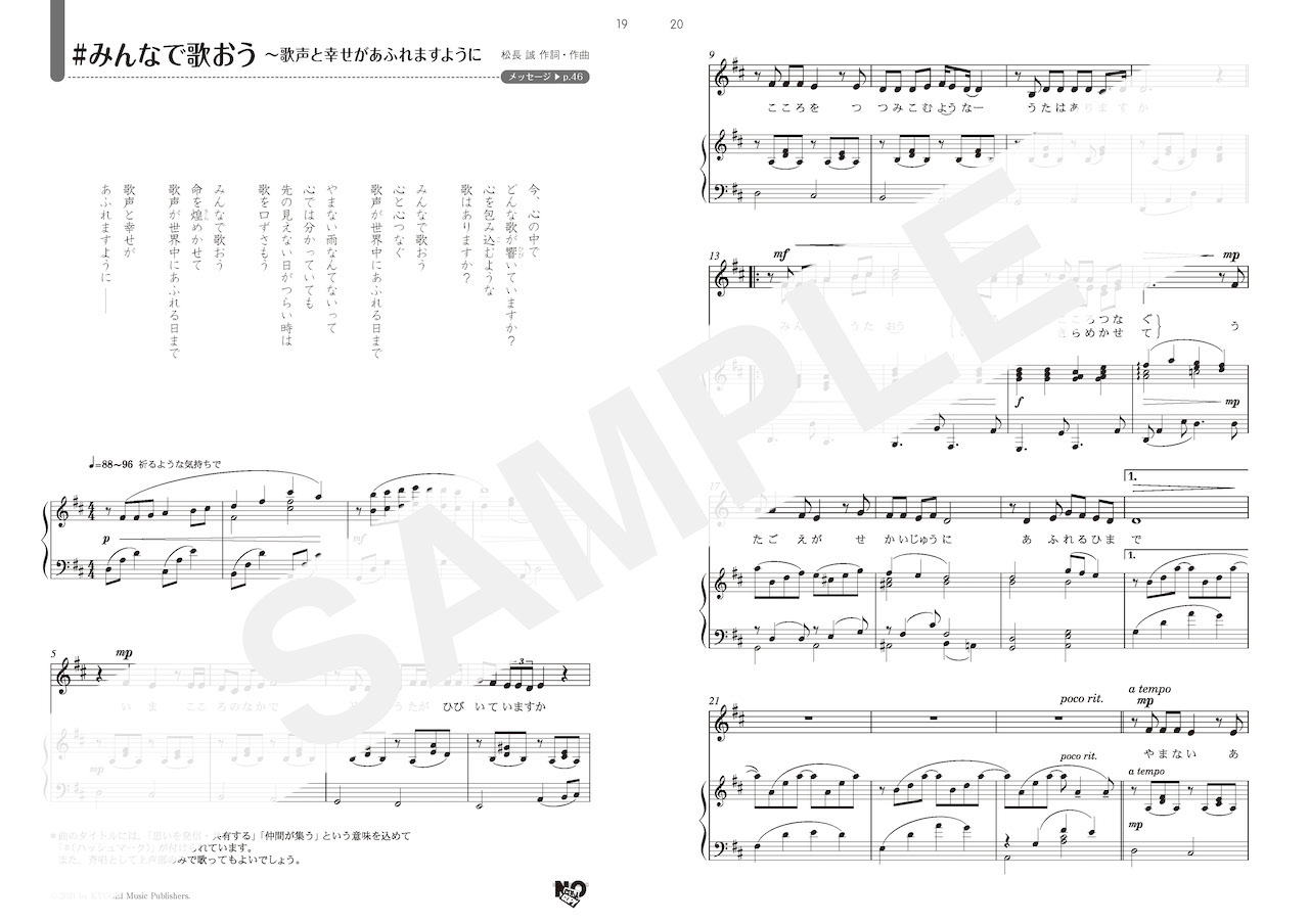 歌いたくても歌えない状況が続く中で,歌への思いがいっぱい詰まった作品が生まれました。そっと語りかけるように歌が始まり,「みんなで歌おう」と歌い放つと,熱い思いがこみ上げてきます。歌詞やメロディーが心にスーッと入ってくる素敵な合唱讃歌です。