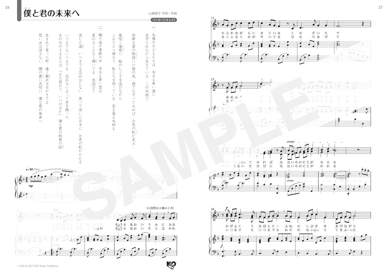 チャーミングな前奏で始まる山崎先生らしい作品。出だしのユニゾンは波のような心地良い伴奏にのって軽やかに,サビでは大きく広がるメロディーをダイナミックに表現できます。卒業式をはじめ,さまざまなシーンで歌える1曲です。