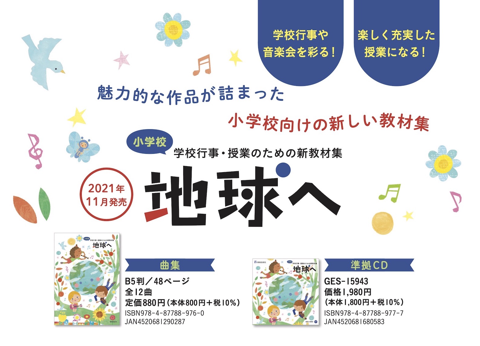 合唱曲でお馴染みの「COSMOS」や「地球星歌~笑顔のために~」の作者による,穏やかでしっとりとした曲想の教芸オリジナル作品。共通教材「夕やけこやけ」のように,授業では,歌詞の情景を思い浮かべながら歌う活動に適した教材にもなっています。