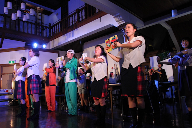 小学生〜高校生を中心としたメンバーが、のびやかな歌と華麗なダンスで熱く演じていました。音楽は作品集『図書館で会いましょう』の曲を中心に、たくさんのオリジナルナンバーが加わった豪華なラインナップ。一緒に口ずさみたくなるようなメロディーがあふれていました。