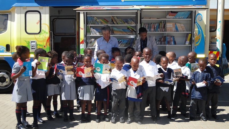 「こうした図書室のない学校に移動図書館車を届けたい。そして、本が読みたくなるような歌を贈りたい」