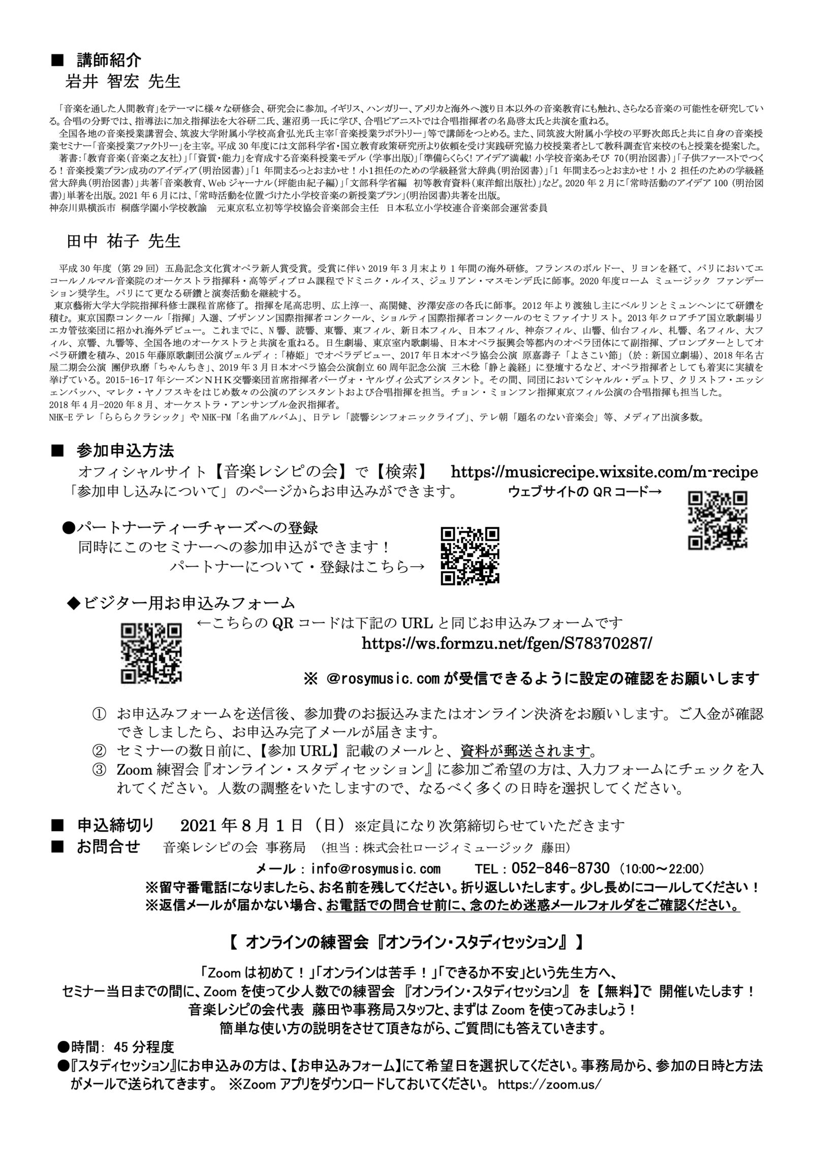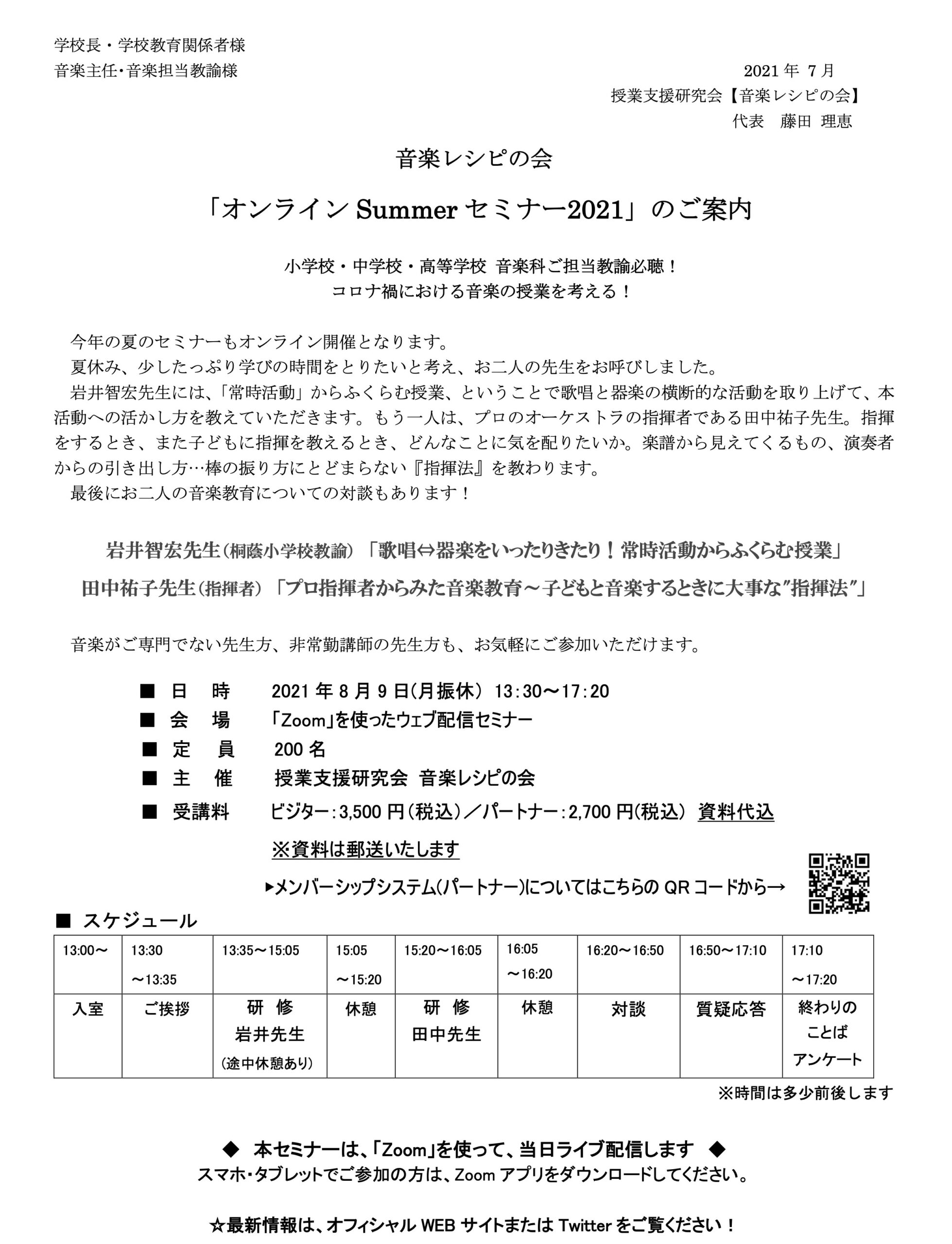4. 音楽レシピの会 「オンライン Summer セミナー2021」のご案内