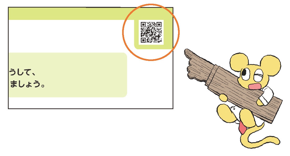 教科書の紙面右上の二次元コードを読み取ることで、タブレット端末で学習をサポートするコンテンツ(ムーブの部屋)にアクセスすることができます。