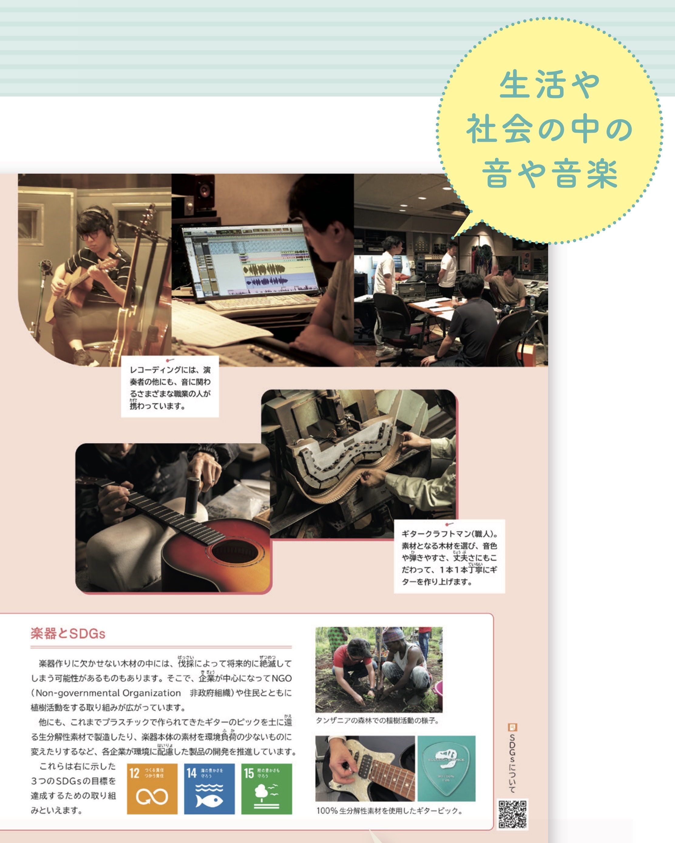 3年生では音楽とSDGs (持続可能な開発目標)の関わりを2つの視点で紹介しています。